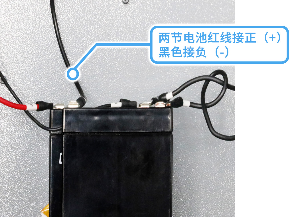 備電部分:使用兩節(jié)電池,紅線接正(+),黑色接負(-),中間有一條連接線,一條細的檢測線,線路接好后,可以上電測試;